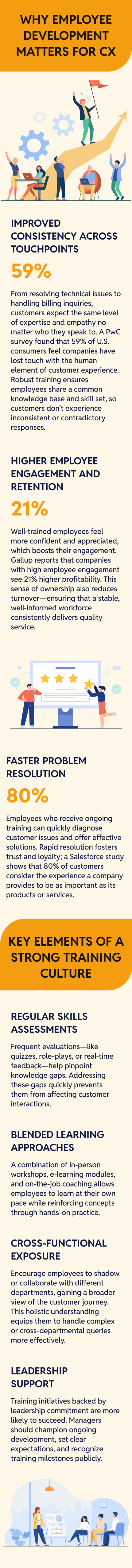 Imagine a customer reaching out to your support line, uncertain if they’ll speak with someone empathetic and knowledgeable. Now imagine every customer interaction—whether by phone, chat, or in person—reflecting the same high standard of service. This consistency doesn’t happen by accident; it’s the product of well-structured employee development programs. According to Deloitte, companies that invest in employee training report a 37% higher productivity rate¹. In an age where customer experience (CX) is a significant competitive differentiator, consistent training translates directly into consistent, memorable customer service.